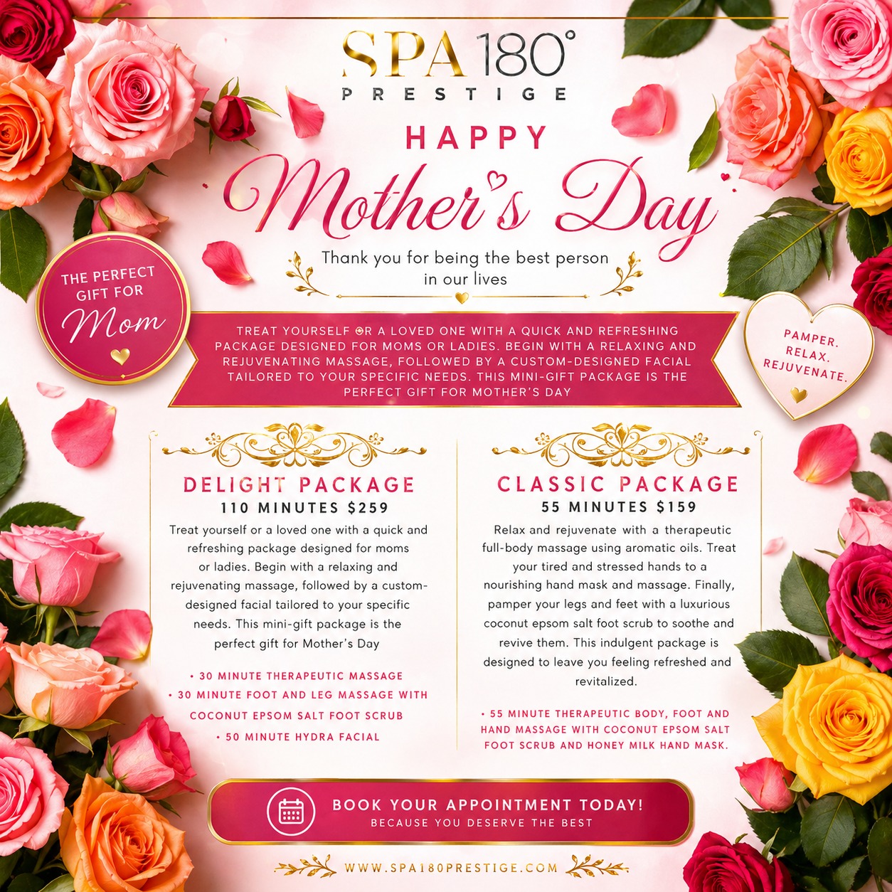 We welcome you to embrace the sense of calm and relaxation that surrounds you from the moment you arrive. Guests commonly seek our luxurious services and hospitality for birthdays, bridal parties, anniversaries or even a much-needed personal day. Whatever the occasion may be, SPA180 Prestige makes it our priority to help you reconnect to your wellbeing and yourself.